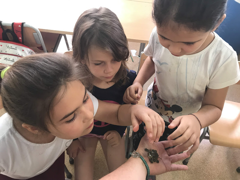 A les classes de 2n hem tingut unes visites molt animals. Ens han vingut a veure el Coco, el gosset de la Berta, i la Cristalina la tortugueta de l'Éric.